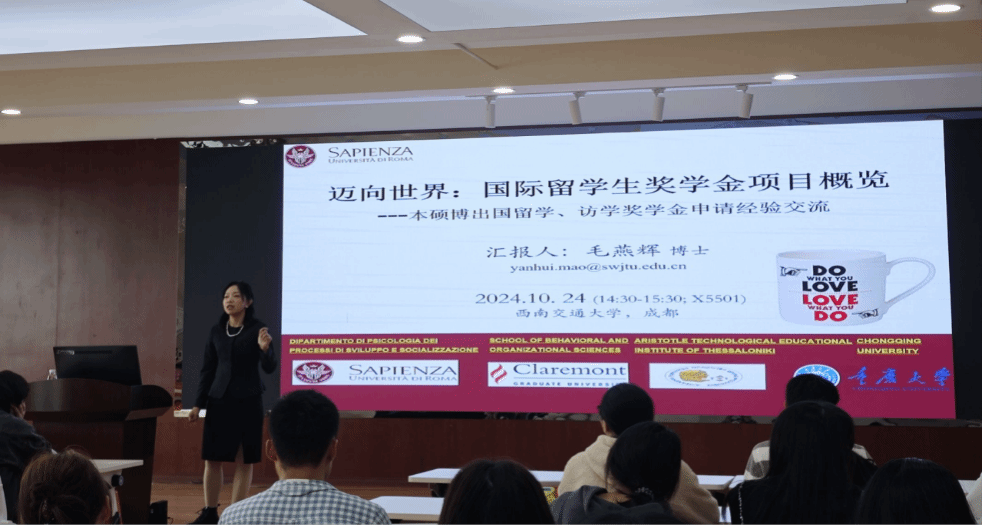 在X5501教室开展了一次关于国际化经验的专题讲座,旨在为同学们讲解关于申请留学的一些实用技巧,拓展同学们国际化视野,为有留学意向的同学提供专业指导,本次讲座由毛燕辉教授主讲,中心2024级全体研究生共同参与。