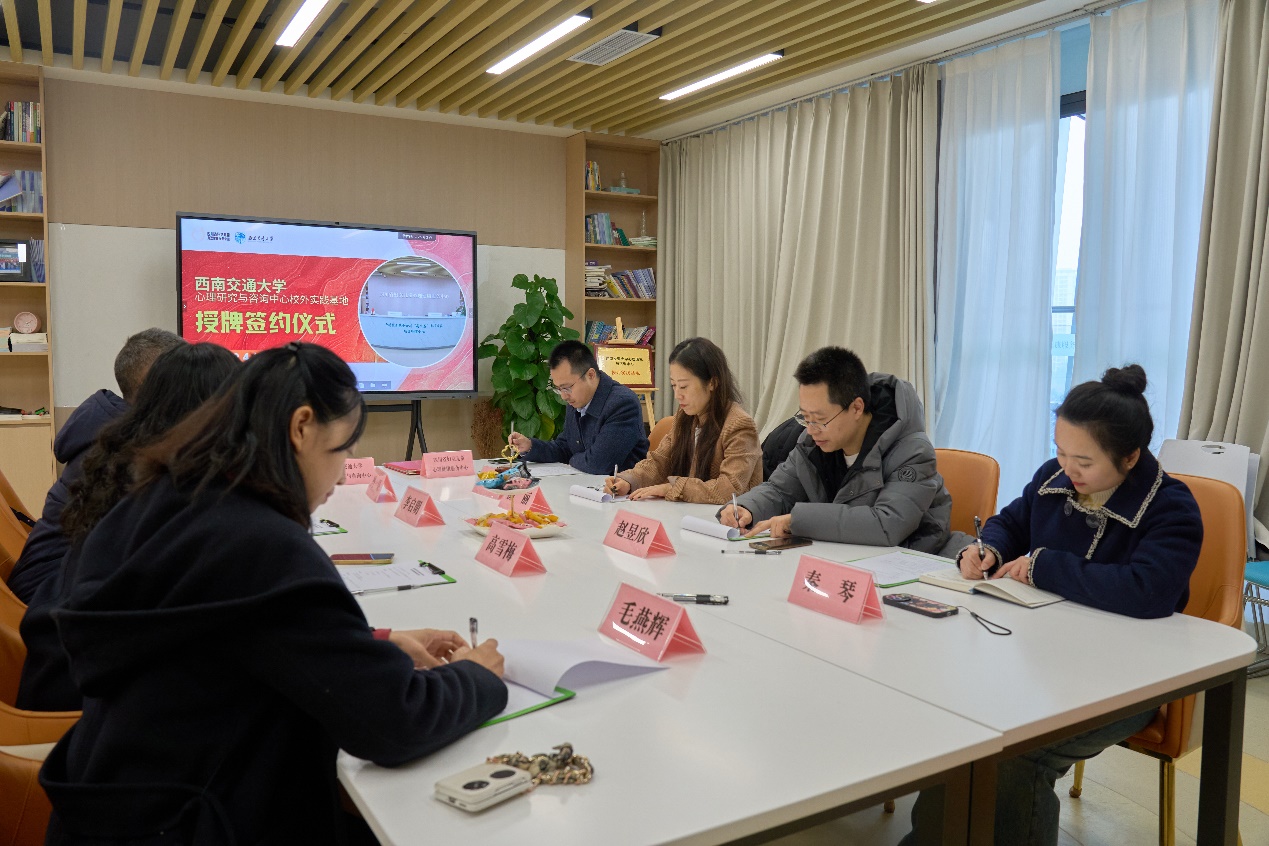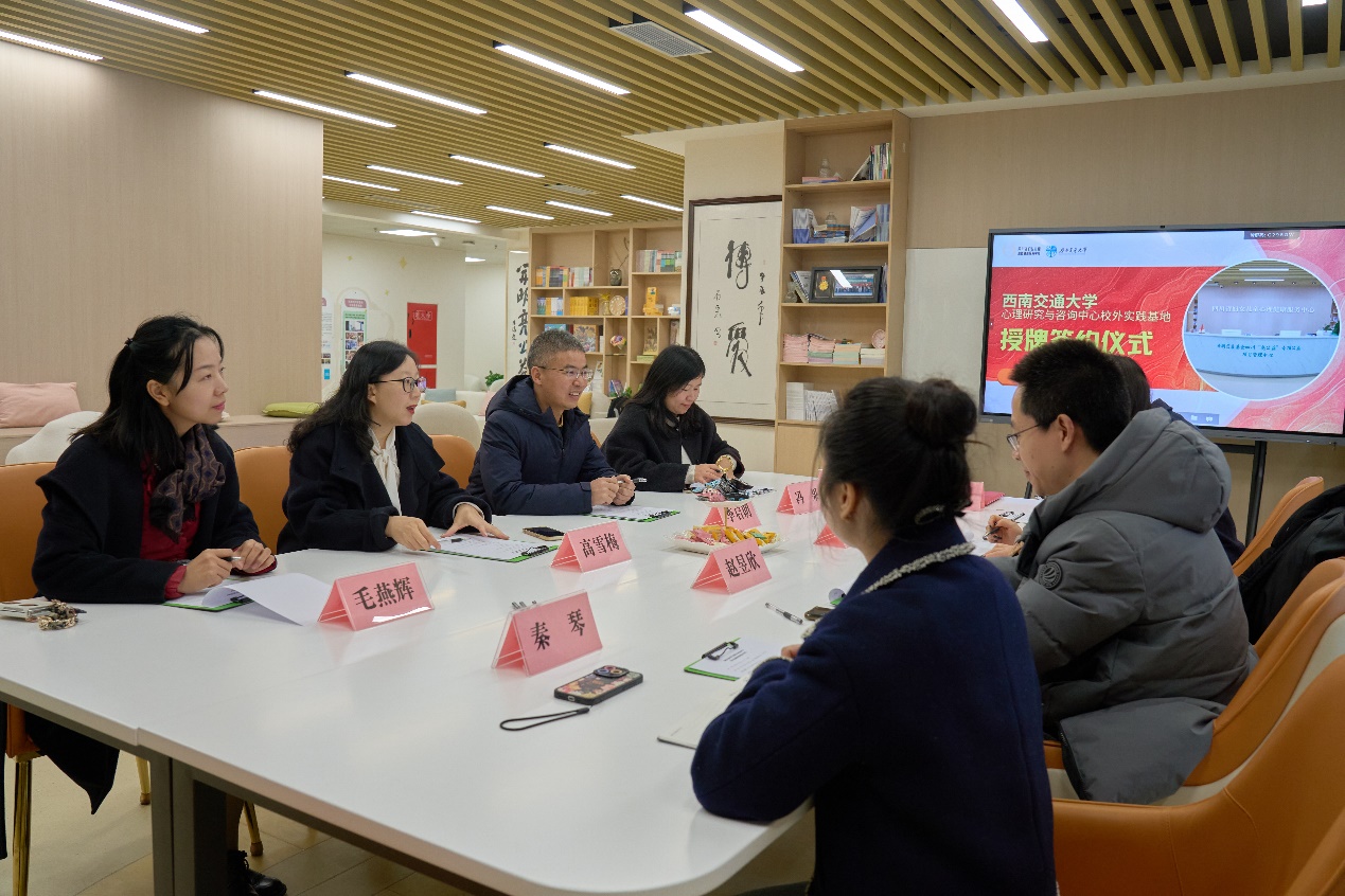 此外,双方还就人才培养、心理评估、心理咨询、心理教育、心理疗愈、心理讲座、心理沙龙等相关工作进行了深入的交流和探讨。此次签约仪式的成功举行,标志着中心在深化校地合作、拓宽实践教学平台、加强学术研究与社会实践的深度融合方面迈出了坚实的一步,为推动心理学人才培养注入新的活力。