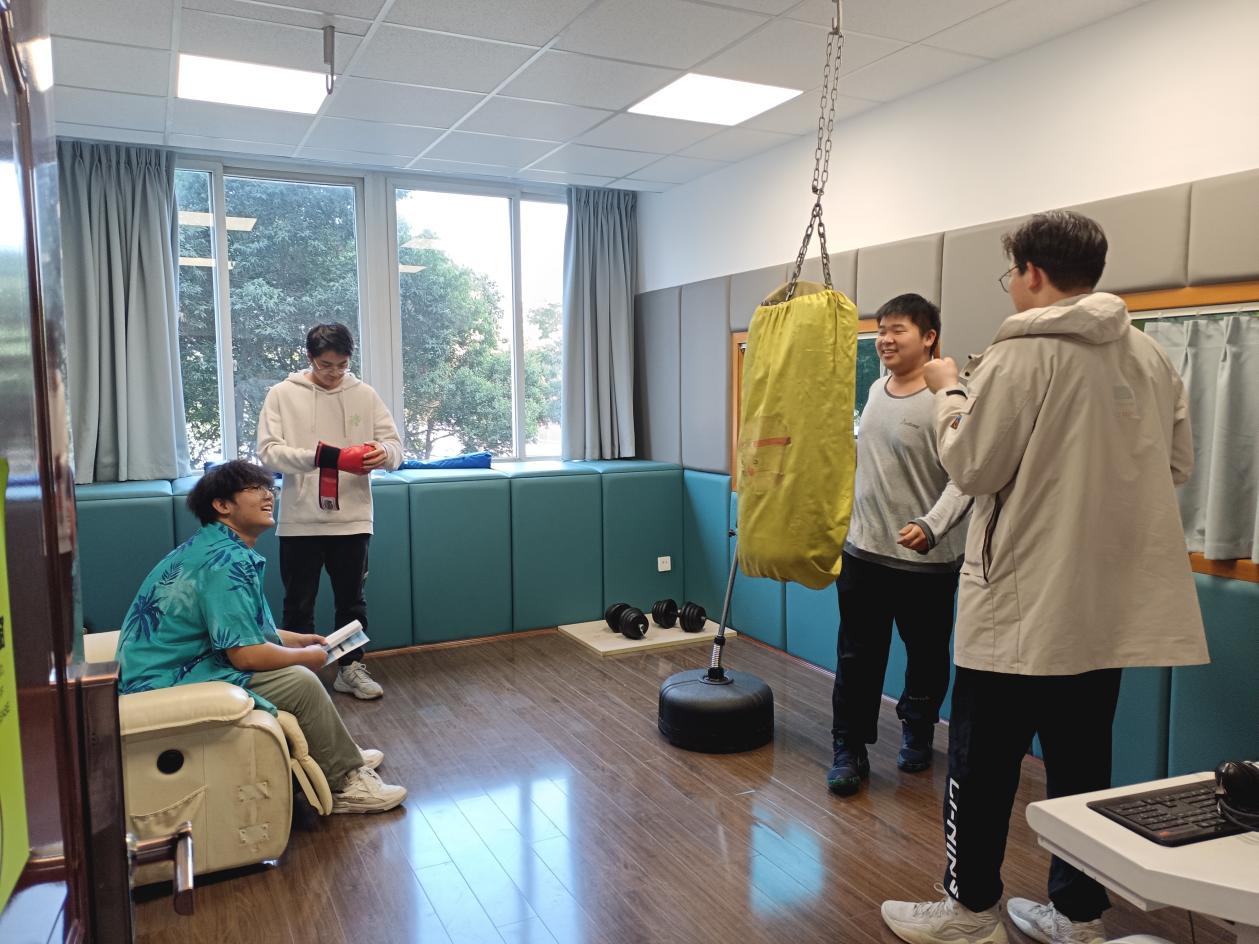 1、情绪宣泄室:配备沙袋、呐喊设备,让同学们通过肢体释放情绪压力。