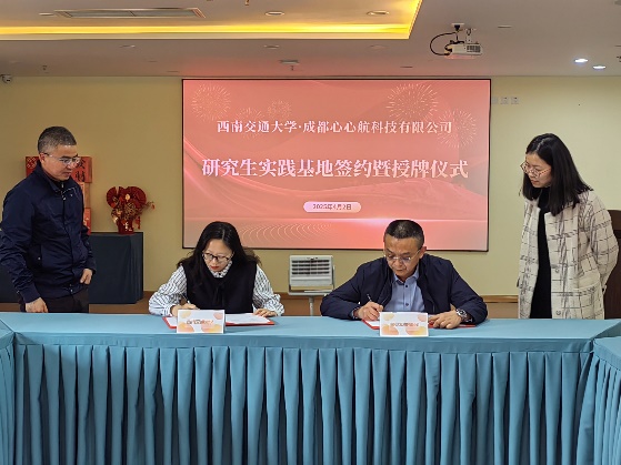 主任高雪梅、副主任李启明带队到成都心心航有限科技公司访企拓岗,双方签订实习基地协议和完成了授牌仪式,共建本硕联合培养基地。