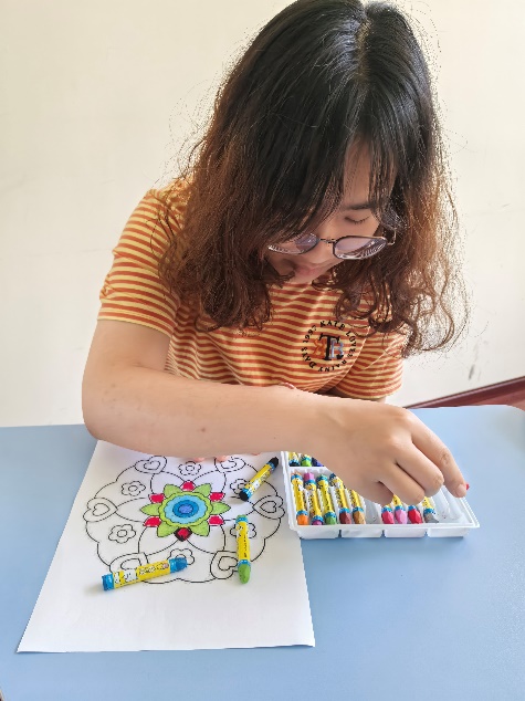 本次活动是学校心理健康教育“五位一体”体系的缩影。曼陀罗(Mandala)在梵语中意为 “圆轮”,是荣格提出的心理整合工具。研究表明,绘画过程能激活大脑边缘系统,降低皮质醇水平,缓解焦虑情绪。在本次曼陀罗绘画中,将美育与心理探索深度融合,帮助学生在艺术创作中实现“保护-凝聚-整合-超越” 的心理转化。