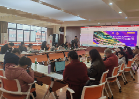 赵轶群、高飞、唐静三位老师代表各自小组向所有参会教师展示分享课程内容安排、教学资源的选择、活动的设计等。