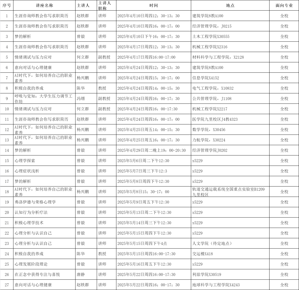 2025年“3·25(善爱我)”大学生校园心理文化节活动,精彩纷呈。从3月25日启动大学生校园心理文化节以来,积极推进“五育融合”,强心育德、强心增智、强心健身、强心塑美、强心逸劳,开展“心光破茧 逐梦笃行”创意画展、“心光逐梦工作坊”系列一次性团体辅导活动、持续支持开展“一院一品”心理健康教育品牌活动,承办四川省首届大学生心理健康嘉年华活动;增强课堂主渠道作用,召开四川省高校心理健康教育教学高质量发展研讨会,常态化开展《大学生心理健康》集体备课,强化实践教学环节,推动课程的数智化建设,《幸福心理学》课程教学团队获得首届全国高校教师数智教育创新大赛二等奖;加强心理健康教育队伍建设,强化心理委员队伍建设,集中对1178名心理委员开展专题培训,聚焦班级主阵地,举办“交心桥”心理班会展示会,开展一站式学生社区朋辈心育活动,建设辅导员心理健康技能培训课程,《高校辅导员心理健康技能系列微课》陆续上线“高校辅导员队伍能力提升大数据赋能平台”,培育心理健康教育名师,获批四川省高校思想政治教育名师工作室(四川省心理健康教育名师工作室)“正心”工作室。加强社会心理健康服务,承办2025年四川省高校心理健康教育中心主任工作会议、助推秦安县“好校长好老师”培育工程暨2025年班主任心理健康教育胜任能力培训班开班、参与组织建设四川学生心理健康教育研究中心成都分中心。