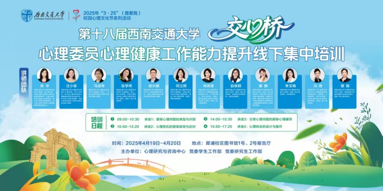 “交心桥”心理委员系列培训活动圆满结束,也是学校2025年度“3·25(善爱我)”大学生校园心理文化节的收官活动。