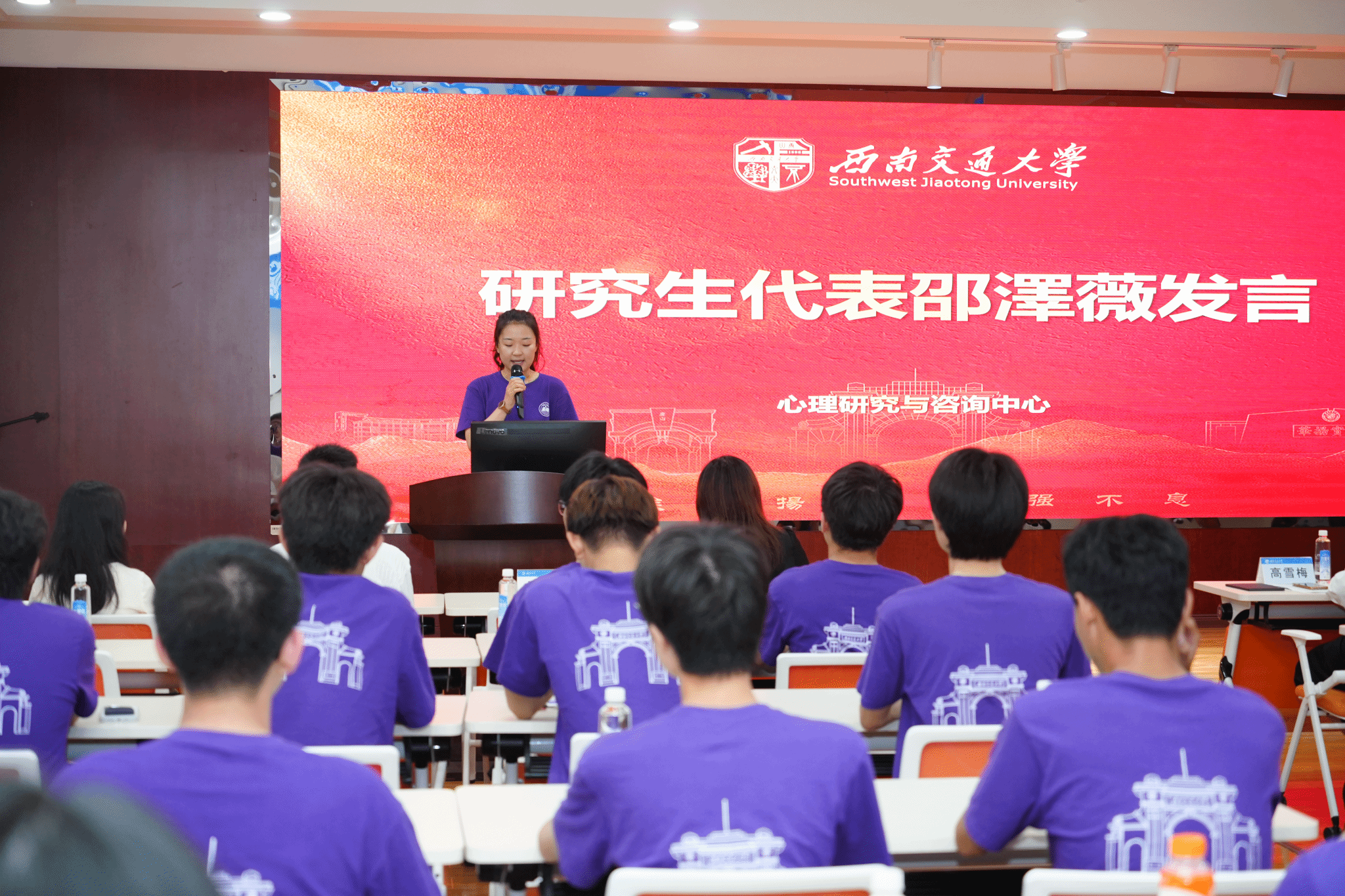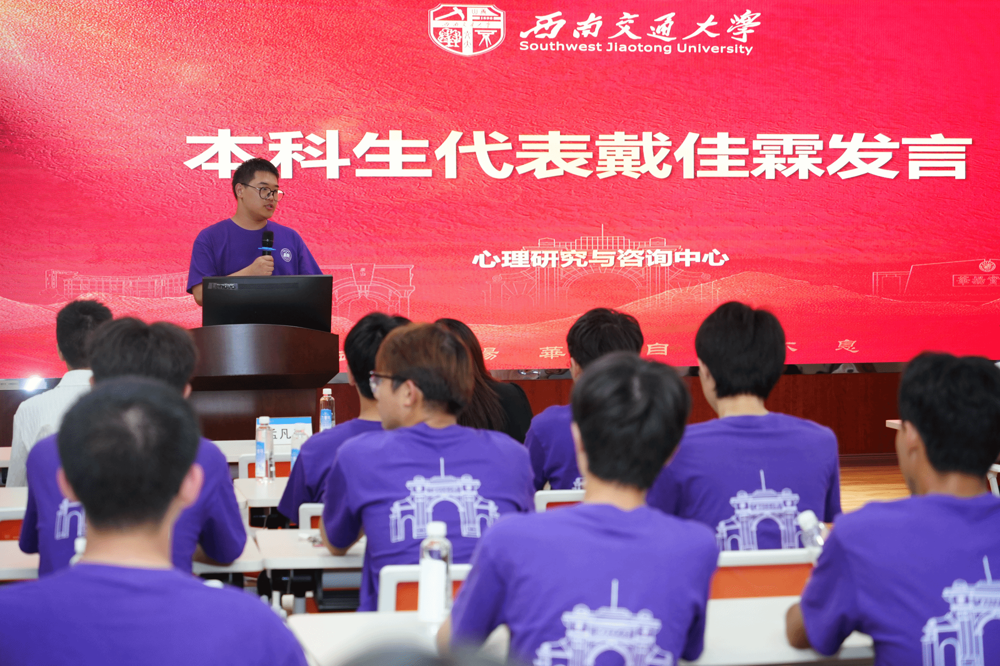 本科新生代表戴佳霖则以身边两位同学的真实经历为引,讲述自己与心理学结缘的故事,并呼吁全体新生在四年本科时光里,努力成为“懂专业、有温度、敢探索”的心理人,用专业知识服务他人、成长自我。