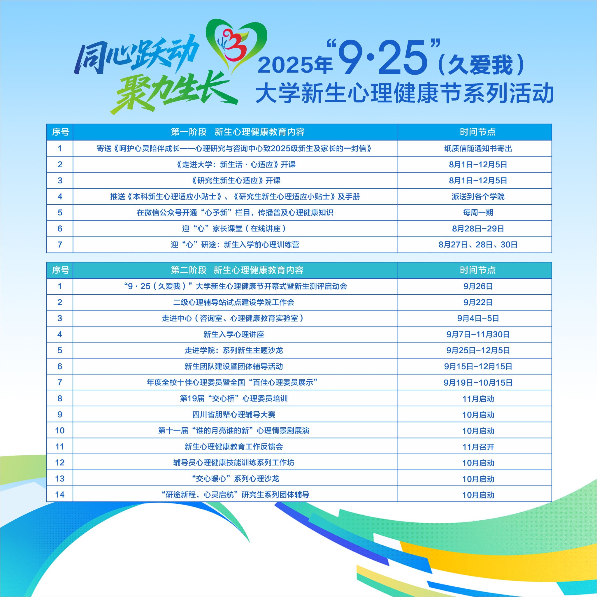 2025年“9.25”(久爱我)大学新生心理健康节系列活动