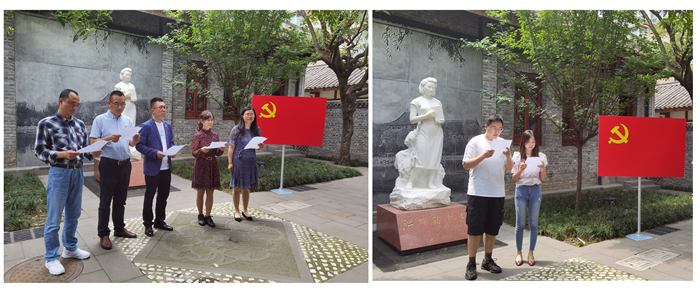 参观活动进入尾声,学生党员组织开展了“红岩叹”诗歌朗诵活动。中心全体班子成员在刘咏梅书记的带领下率先垂范,引领全体师生朗诵了讴歌江姐诗篇,并鼓励全体党员继承革命先辈的光荣传统,在此次党史学习教育中努力传承红色基因,践行初心使命。最后,在江姐雕像前,AV大平台
