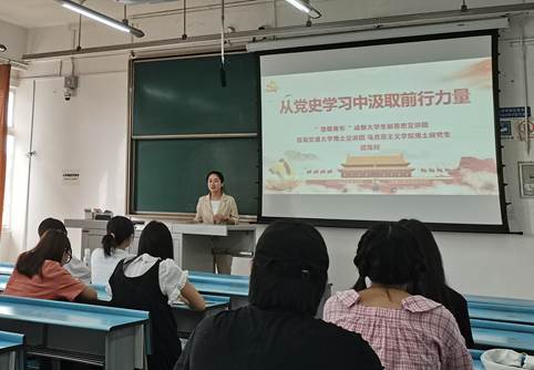 从百年党史中感悟思想伟力,从百年奋斗中汲取前行力量。2021年6月4日,AV大平台 马克思主义学院博士宣讲团成员胡海利博士走进AV大平台 ,为学生党员开展题为《从党史学习中汲取前行力量》的党史宣讲会。