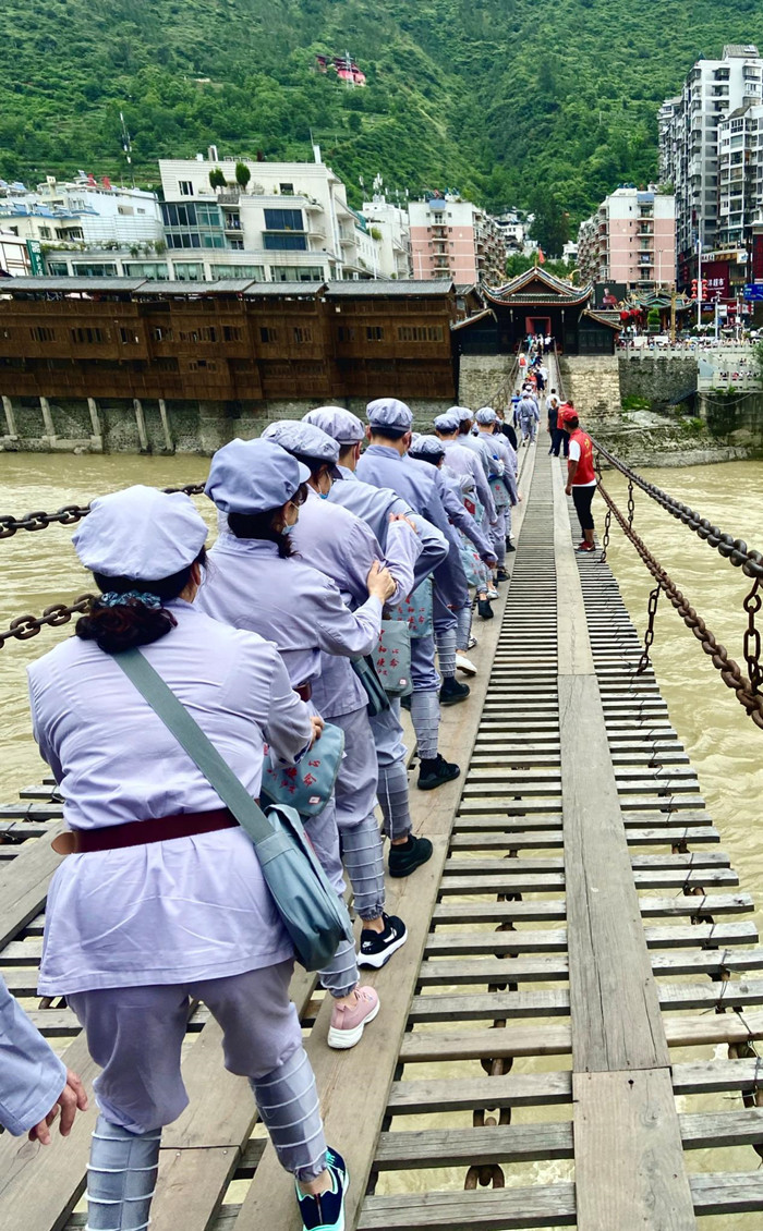 开班仪式后,全体学员来到泸定桥,聆听了微党课“飞夺泸定桥的‘奇绝惊险’”,重温了“飞夺泸定桥”这段历史。接下来,学员们共同走过泸定桥,亲身感受红军走过的路,追忆了铁锁链上的革命先辈。
