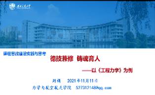 联合党委教师工作部(教师发展中心)、教务处,邀请力学与航空航天学院刘娟博士为全校一线教师介绍课程思政的实施路径、方法和形式。讲座由AV大平台