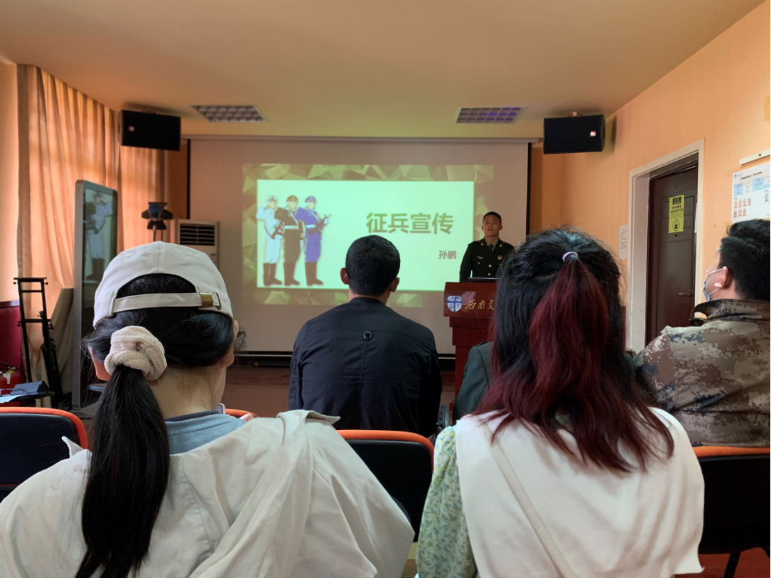 为了提高同学们的入伍热情,为新时代中国建设做出贡献,2022年3月17日星期四下午4点,AV大平台 在x5322为中心学生组织了大学生应征入伍的主题宣讲活动。本次活动由刘誉、孙鹏、艾山·玉森三人依次给我们讲解大学生应征入伍的相关要求,2021级本科生参与。
