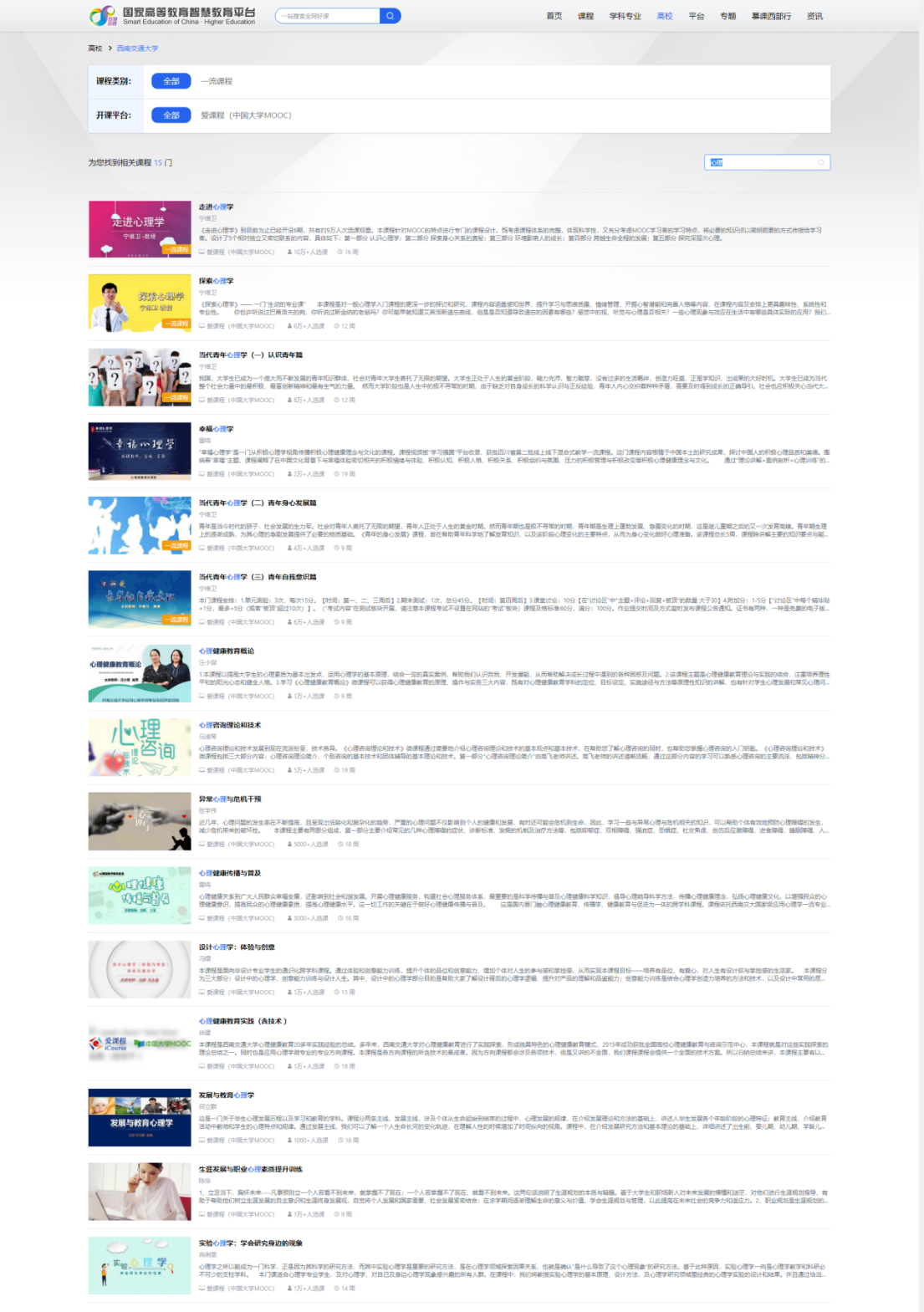 有15门在线课程在国家高等教育智慧教育平台首批上线(其中,5门国家一流课程、2门省级一流课程),面向广大高校、社会学习者全面开放。