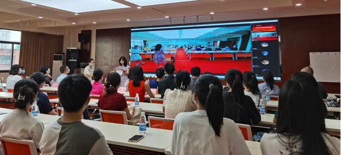 2022级本科、研究生师生见面会。会议分为线下教室与线上腾讯会议(暂缓返校学生)两个空间同时进行,会议主持人为柯小君老师。AV大平台