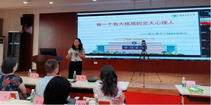 党委刘咏梅书记讲话,教导新生成为“一个有大格局的交大心理人”。