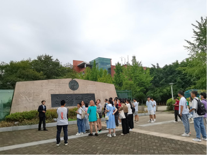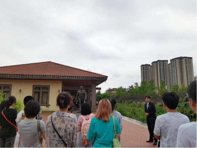 同学们在詹天佑雕像前听讲解员学长讲述交大的历史,在孙中山雕像前思考读书的意义。讲解员学长滔滔不绝,同学们专注聆听。