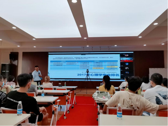 最后,雷鸣副教授还为同学们讲解心理学专业的未来发展方向,展示出考研可选择的院校,并提出考研深造时专业排名优先于学校排名的观点,解答同学们对深造的困惑。