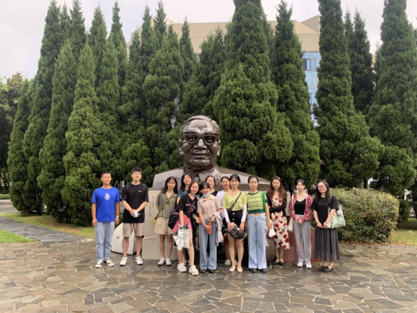 接着,蒋老师又带着同学们来到了詹天佑图书馆和镜湖。一路上,大家相谈甚欢,本来互相都不是很熟悉的同学开始渐渐活络起来。最后,同学们在茅以升雕像和新生迎新点前留下了第一天的集体合照。