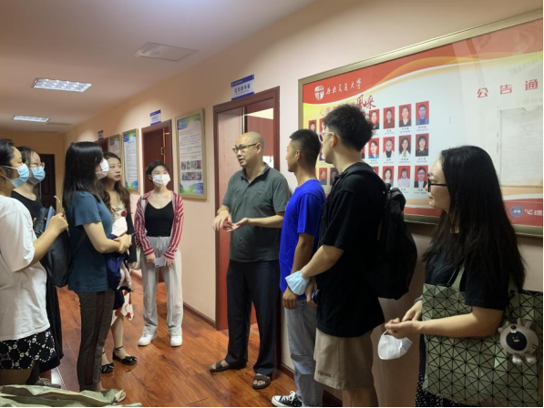 各教室的主要功能及各类设施,带大家参观了心理治疗模型:沙盘游戏。亲切的环境和愉快的氛围让研究生们充满了对未来学习的憧憬和向往。