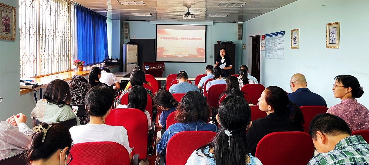 会议上,刘咏梅同志带领中心全体教职工共同学习了校党委书记王顺洪同志在学校第十五次代表大会上所作的《踔厉奋发 笃行不怠 谱写中华民族伟大复兴的西南交大新篇章》报告。报告分四个部分,分别回顾了第十四次党代会以来的工作,指出学校未来五来乃至建校150周年之际办学治校的总体思路、发展目标、基本准则以及未来五年学校高质量发展的实现途径,最后指出要全面加强党的建设和思想政治工作,引领全校各项工作向一流进军。