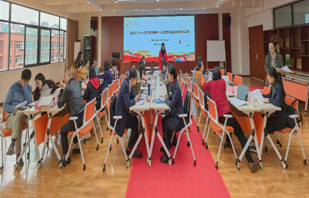 党委于2022年10月13日下午开展了“喜迎二十大·学习贯彻学校第十五次党代会精神”系列活动,全体教职工和学生党员参加了此次活动。