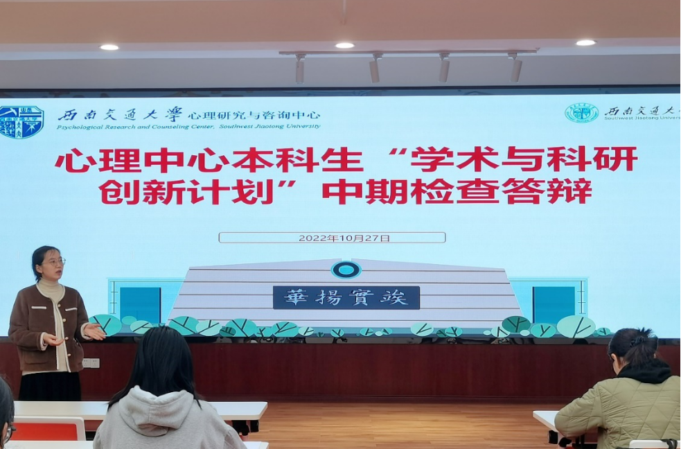 于2022年10月27日在犀浦校区X5501开展本科生“学术与科研创新计划”中期检查答辩。此次答辩由学工组副组长樊菊老师主持,中心张学伟副教授、马淑琴副教授、冯缙副教授担任评委,11组答辩成员到场参与答辩。