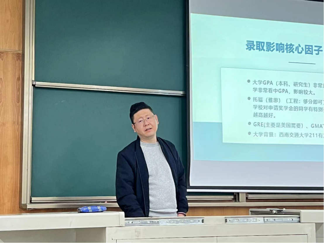 在留学准备工作版块,魏老师从录取影响的“硬背景”和“软背景”入手,强调了科研、论文、推荐信等的重要性,并提醒同学们如果有留学打算,就要从大二开始准备。现如今知名大学对科研和论文普遍都有要求,魏老师通过几个例子向同学们展示了如何在简历中充分展示自己,并强调拿到语言成绩的重要性。