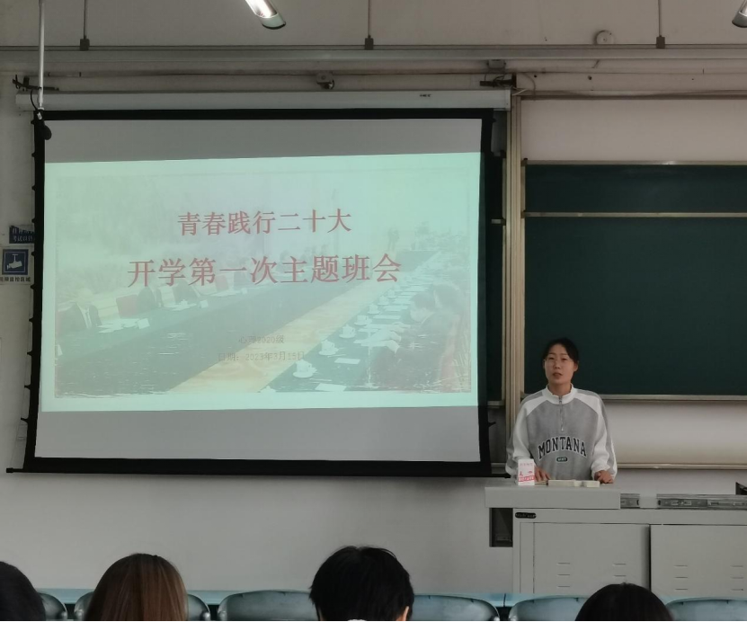 心理本科2020级于2023年3月16日上午在X2333召开“青春践行二十大”开学第一次主题班会,本次会议由2020级本科辅导员李艳主持,2020-01班和2020-02班的全体同学参加。