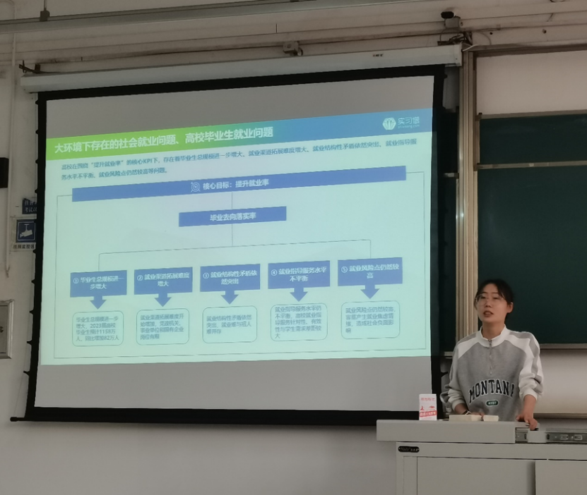 最后李艳辅导员带领同学们关注如今就业形势,分析了就业市场岗位少竞争大的现状及考研考公等其他选择的利弊,提醒同学们注意提升自己能力、增强自身竞争力,并对同学的未来表达了期望和祝福。