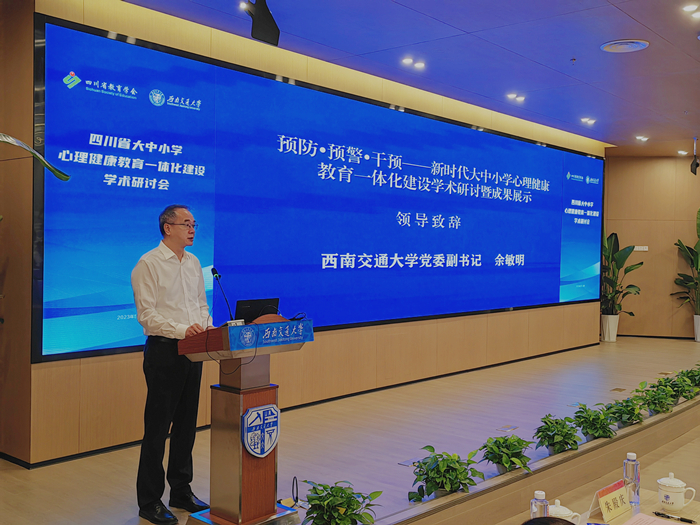 副主任雷鸣作了《“大思政”格局下大中小学心理健康教育一体化建设探索与实践》主旨报告,从心理健康教育与思想政治工作的关系、大学不同阶段的衔接与过渡、面向中小学提供心理健康工作指导、推进家—校—社(医)协同联动等方面,分享了西南交大开展大中小学心理健康教育一体化的建设经验,呼吁建立全省大中小学心理健康教育一体化建设共同体。四川省教育学会德育与心理健康教育分会副理事长、成都市教科院心理艺体研究所所长曹璇作了《专业化建设学校心理“三预”体系——以成都市为例》主旨报告,从“整体思考,系统工作;主动防预,夯实基础;分级预警,防微杜渐;科学干预,协同克难”四个方面,分享了成都市中小学开展心理危机预防、预警、干预的做法和经验。