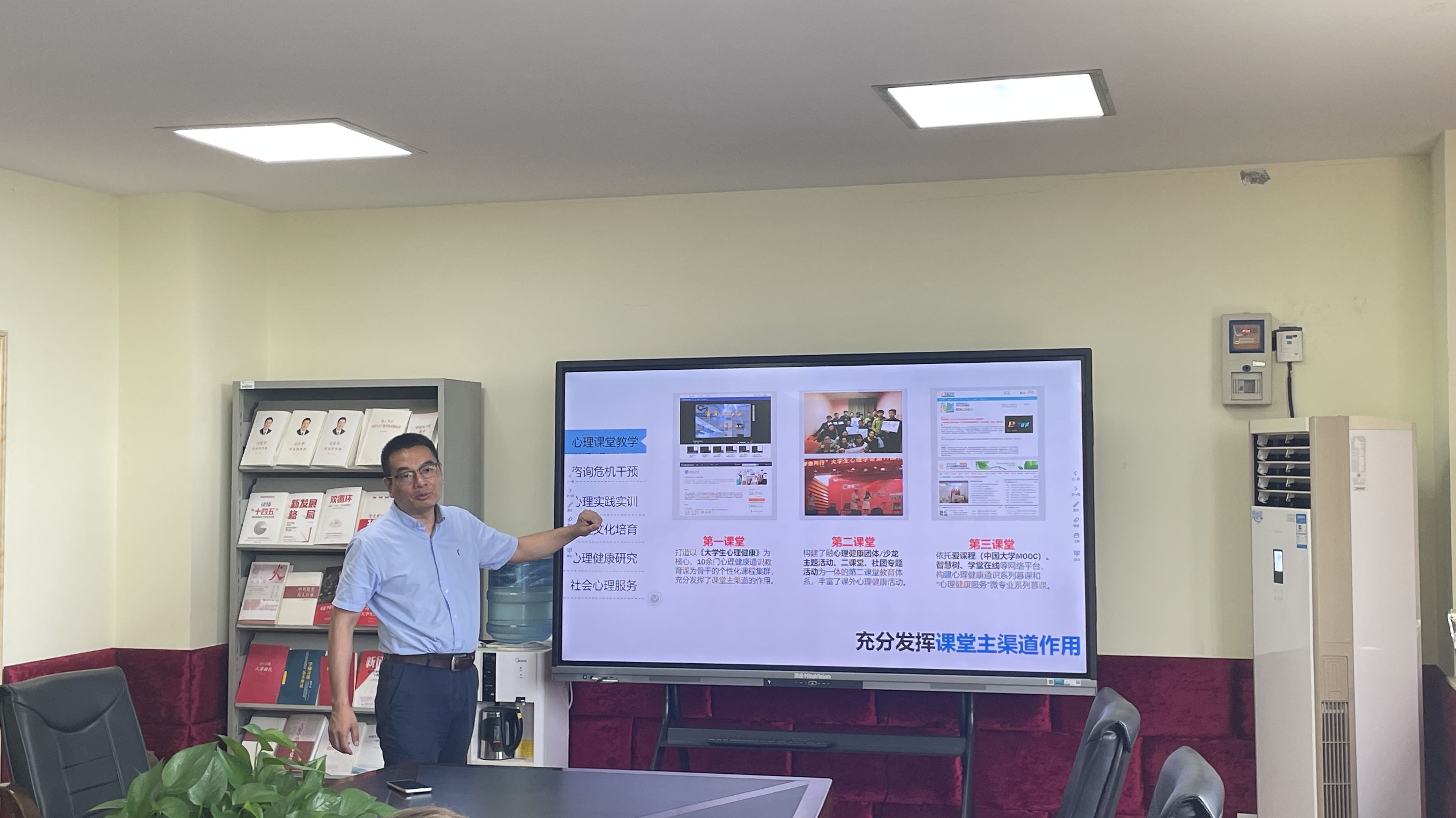 座谈会上,雷鸣副主任对张澜主任一行到中心表示热烈欢迎,随后从中心机构设置、课程建设、心理咨询与危机干预、心理实验实训、心理健康文化活动、科学研究、社会服务等方面介绍了中心心理健康教育工作开展的基本情况。