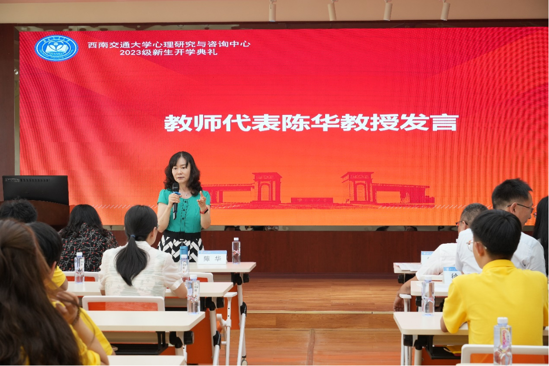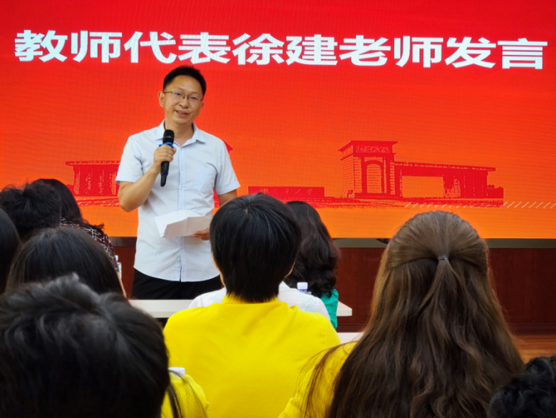 随后,教师代表陈华教授讲话。陈教授向同学们强调了及早树立目标的重要性,注意免研计算方法,不能松懈。同学们还要懂得珍惜时间,提高自我管理能力,自立自强。陈教授提醒大家,大学是人生的关键阶段,能够奠定人生的底色。注重自身综合素质的发展,立德立言立行,在社会立足。