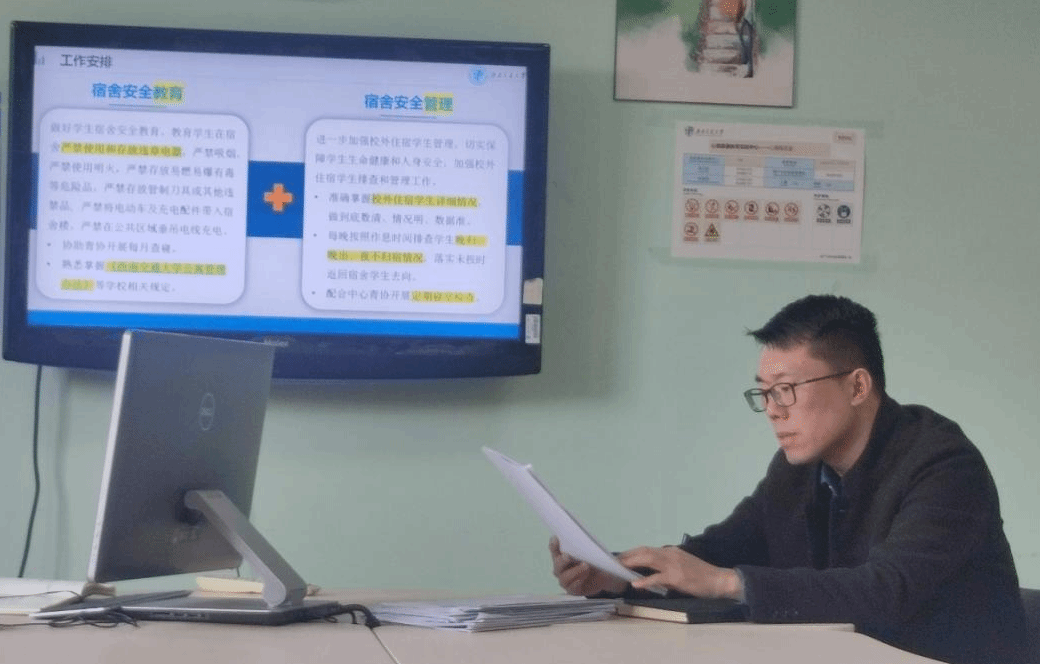 会上,辅导员李艳老师指出各班安全委员在开展工作过程中要明确职责和工作任务,确保每一项安全措施都能落到实处。李老师首先强调了防火、防盗、防骗等安全教育的重要性。接着,李老师提及宿舍安全管理,包括宿舍卫生、安全设施、违章电器等方面的管理。随后,李老师谈及流感的预防,提醒同学们注意个人卫生和环境卫生。最后,李老师强调防范电信诈骗的重要性,提醒同学们要提高警惕,增强自我保护意识。