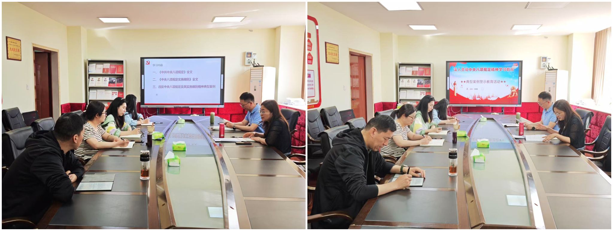 第一阶段,党委书记刘咏梅领学中共中央八项规定及实施细则,随后就违反中央八项规定及其细则精神的典型案例进行警示教育。刘书记强调到,全体党员要提高政治站位,深化思想认识,注重思考八项规定对日常工作的指导意义,将作风建设融入日常,通过务实行动服务师生,以清廉高效助力中心高质量发展。