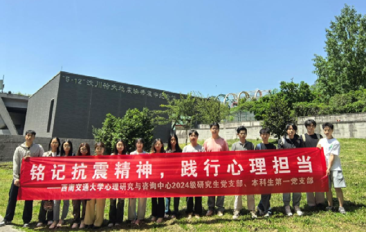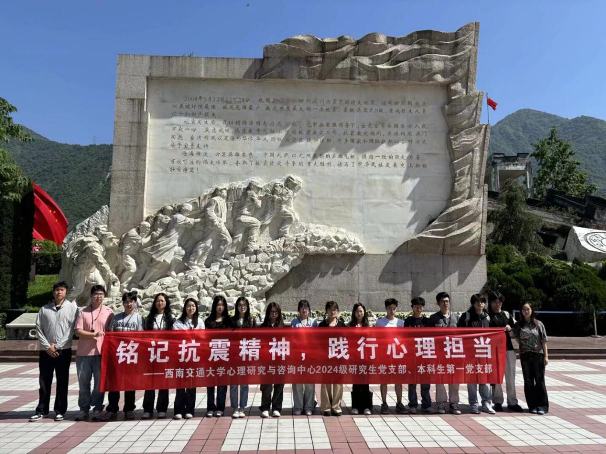 的本研学生共计17人,在中心团委书记樊菊的带领下,怀着崇敬与哀思之情前往“5·12”汶川特大地震映秀震中纪念馆开展主题党日活动,追寻抗震救灾精神,同时发挥心理学子的力量,为灾后幸存的人尽一点绵薄之力。