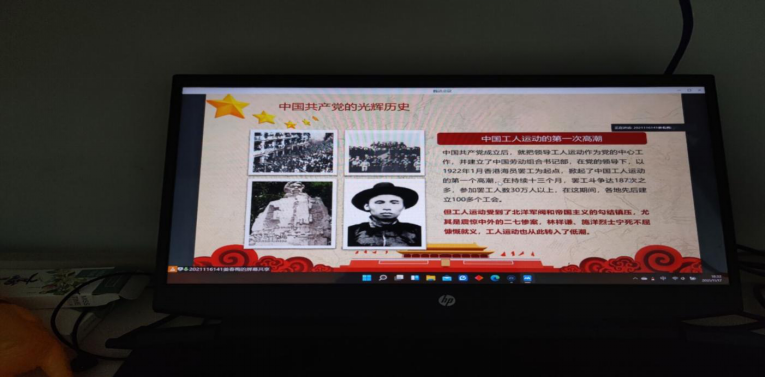 2021年11月17日晚上6点半,AV大平台 2021级全体学生在线上进行了新民主主义革命的党史回顾学习,由于疫情影响,本次学习全程线上进行,由班级团支书姜春梅主持,分为课件讲解与视频观看两个部分。