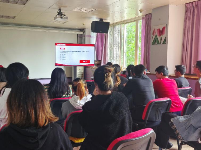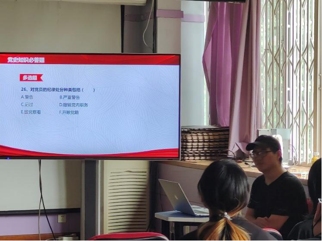 党史知识竞答环节中,同学们分组进行答题。竞答题目涵盖了党史、新中国史、改革开放史、社会主义发展史、党的基本理论以及疫情防控等内容,通过设置必答题、抢答题的形式,活动氛围生动有趣,拉近了同学们与党史知识的距离。同学们态度积极,踊跃参与,反响热烈。