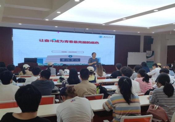 党委书记刘咏梅从时代课题出发,给2021级本科生讲授了一堂以“让奋斗成为青春最亮丽的底色”为主题的思政课。现场气氛活跃,同学们积极响应。
