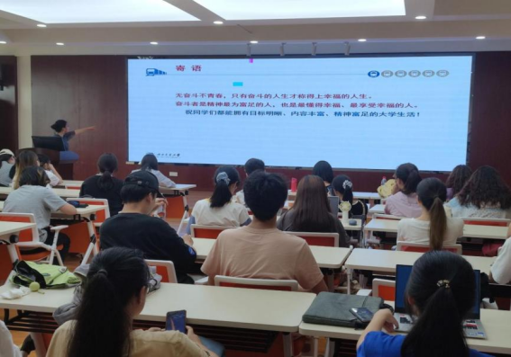 最后,刘书记以两句温暖的寄语作为本次思政课的结尾,祝愿同学们都能拥有目标明晰、内容丰富、精神富足的大学生活。