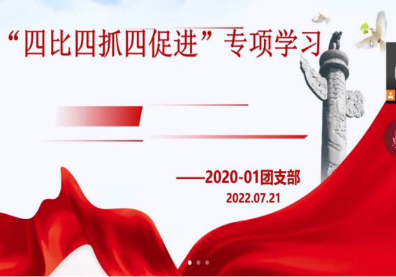 2022年7月21日,在心理2020-01班团支书甘诗源的带领下,2020-01班团支部通过线上开展了“四比四抓四促进”专项学习活动,2020-01班全体团员参加。