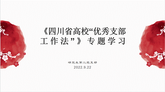 2022年9月22日晚,AV大平台 研究生第二党支部,在支部书记赵海琳同志的组织下,进行了关于四川省高校“优秀支部工作法”的线上学习会。