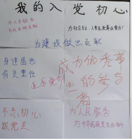 活动过程中,全体党员分享了自己的入党初心,并将其写在纸上。党员们纷纷表示,会一心向党,不忘初心,坚定地跟随党的脚步,永远跟党走。