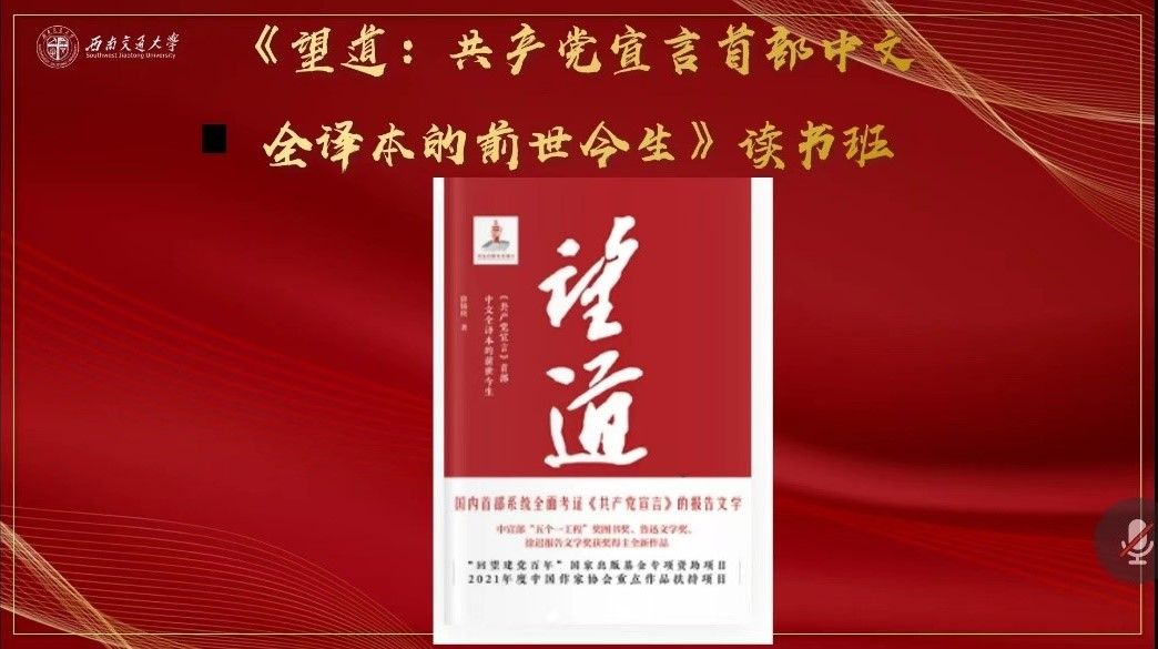 首先,由吴昊阳、郭宇亮、刘磊对书籍《望道》的第一章到第三章进行读书交流分享。分享的同学指出,马克思主义是我们立党立国的重要思想,是我们党的灵魂和旗帜。心有所信,方能致远。通过学习《望道》,同学们有了一些思考和启发,在会议上积极交流。