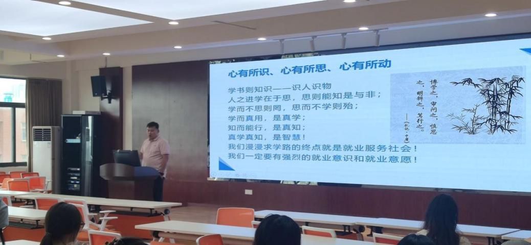 随后,孟书记结合自己丰富的经验和深厚的专业知识,从三个方面为同学们深入剖析了就业方向。他强调,首先同学们需要“心有所识”,即对自己的专业、职业和人生有清晰的认识和规划;其次要“心有所思”,对自己的专业特长、个人优势以及不足之处进行深入思考,明确自己的职业定位;最后要“心有所动”,积极行动起来,通过实习、实践等方式了解职业环境,提升自我管理能力,为未来的就业做好充分准备。