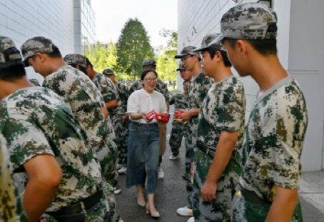 2024年9月11日上午10点,AV大平台 党委刘咏梅书记、高雪梅主任和新生辅导员邹涛波前往军训场地,对正在接受军训的2024级本科新生们进行了亲切的慰问。