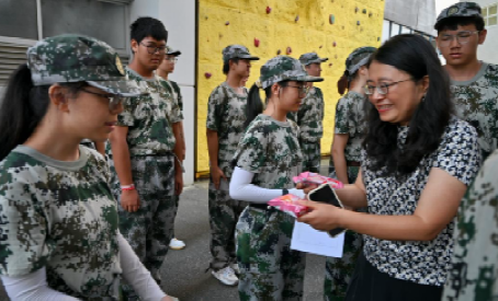 面对慰问,同学们热情洋溢地进行了一套军体拳表演。刘书记和高主任向同学们表达了关心和问候,对大家表现出的昂扬斗志和不怕苦、不怕累的精神给予了高度赞许,同时也叮嘱同学们要关注自己的身体健康。随后,白鸣宇同学和李虹蓉同学分别代表男生和女生,分享了他们在军训中的感想和收获。