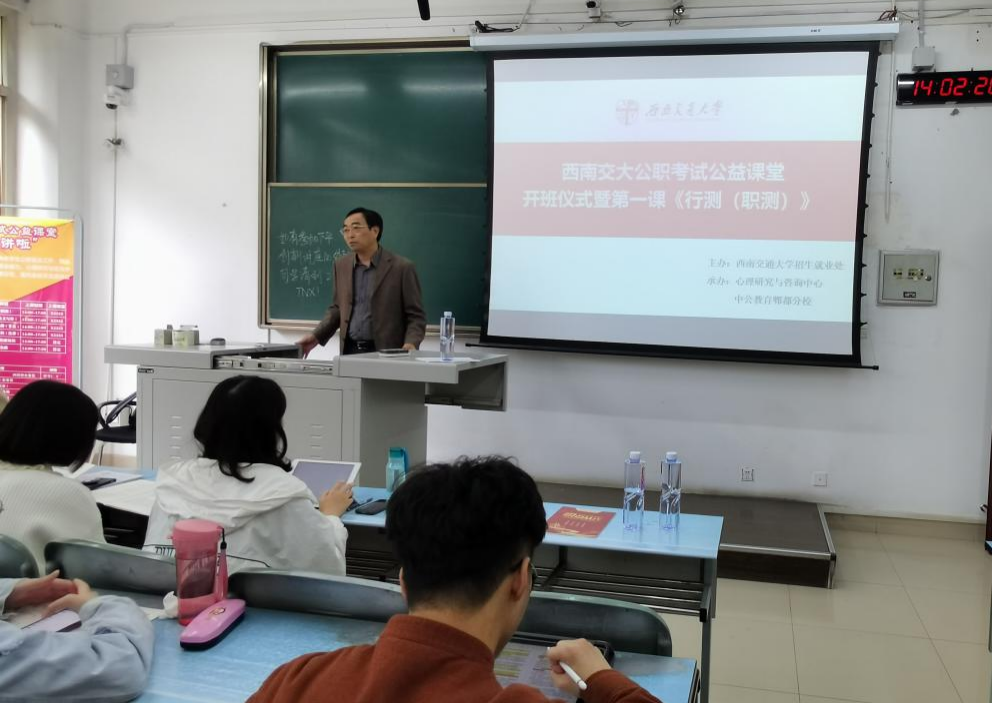 公职考试公益课堂开班仪式暨第一讲《行测》在犀浦校区X2223举行。本次公益课堂由AV大平台