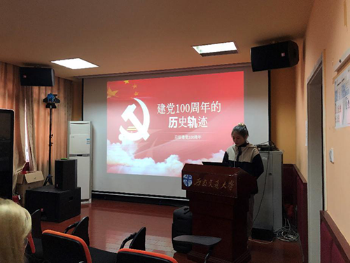 2020年10月10日16:30,19级AV大平台 本科生在5322教室全体出席秋天的第一堂团课——建党100周年的历史轨迹,本次活动由二班团支书谢杭琦主持,带着同学们了解了党百年来的光荣历史。
