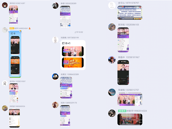 直播开始后,团员们在自己熟悉的直播平台观看团中央的直播,并陆续在班群里截屏打卡。观看直播结束后,团员们有感而发,将自己的感想与大家分享。