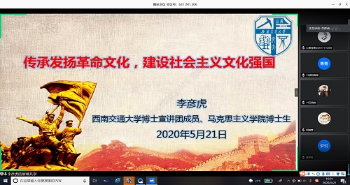 2020年5月21日下午4点,以“传承发扬革命文化,建设社会主义文化强国”为主题的“青马工程”活动线上培训如期举行。本次培训是由AV大平台