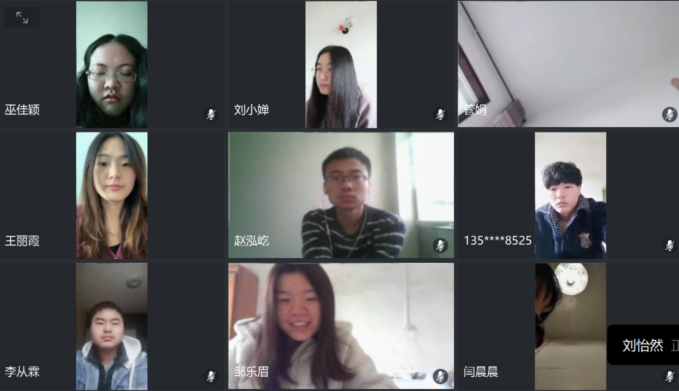 2019级本科生2班班长刘怡然主持。此次班会意在总结线上教学以来同学们得到的学习经验,改进自己的学习态度及方法,通知读书分享会的相关事宜,督促同学们进行青年大学习并讨论团员评议的具体事项。